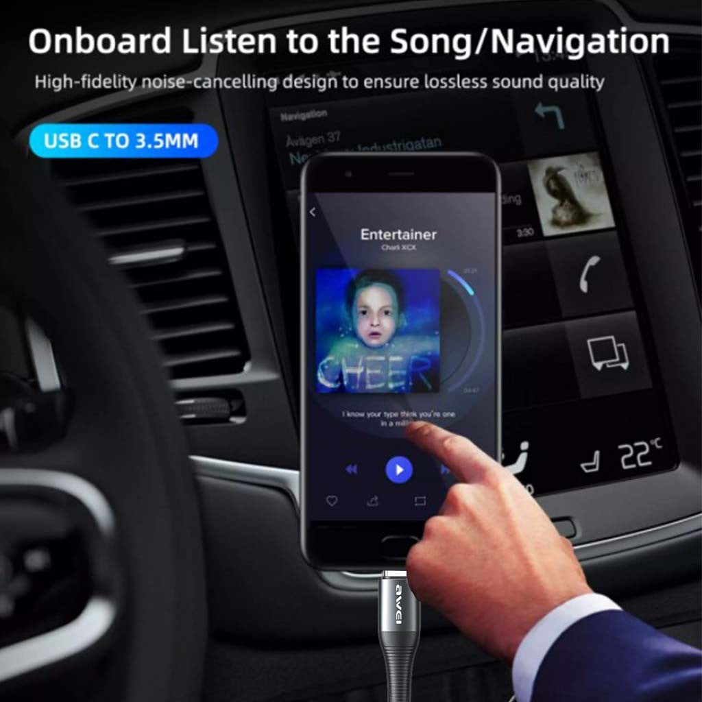 Awei CL-116T Type-C Cable To Aux 3.5mm Audio Plug Adapter Cables Adaptor 1M For Type-C Smartphones