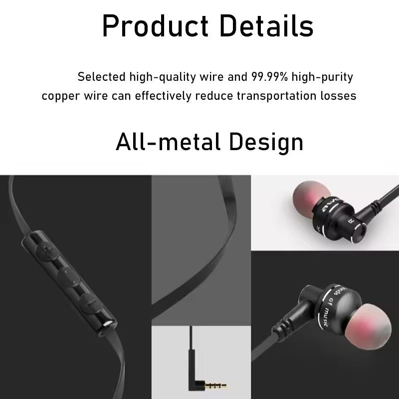 Awei ES-10TY Wired Headphones Super Bass Earbuds Metal 3.5mm Earphone Stereo In-Ear Headset With Mic For iPhone Samsung Phones